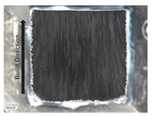 左图是用EB-PBF制成的钨物体(15毫米立方体)的横截面照片。截面结构为高密度柱状结构(1926 g/cm3)