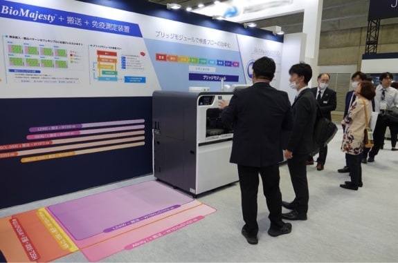 在本次展会上,我们通过连接设备、试剂和信息处理系统的解决方案,有力地展示了既节省劳动力又保证检测准确性的能力。