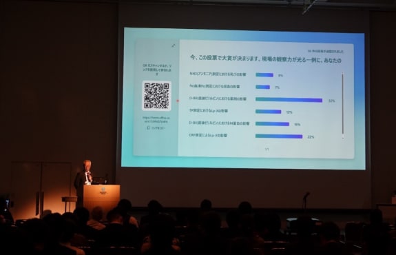 在分析设备的自动化和黑匣子不断进步的同时,生化检测也正在过渡到需要精密控制以确保准确性的时代,包括分析前后的过程(标本采集、运输和储存)、检测结果报告和检测值的解释。 JEOL以“自动化和精度保证”为中心,介绍了新型自动控制系统的概况,滨松大学医学院附属医院的Keita Yamashita博士就提高测量结果可靠性的方法进行了特别演讲。