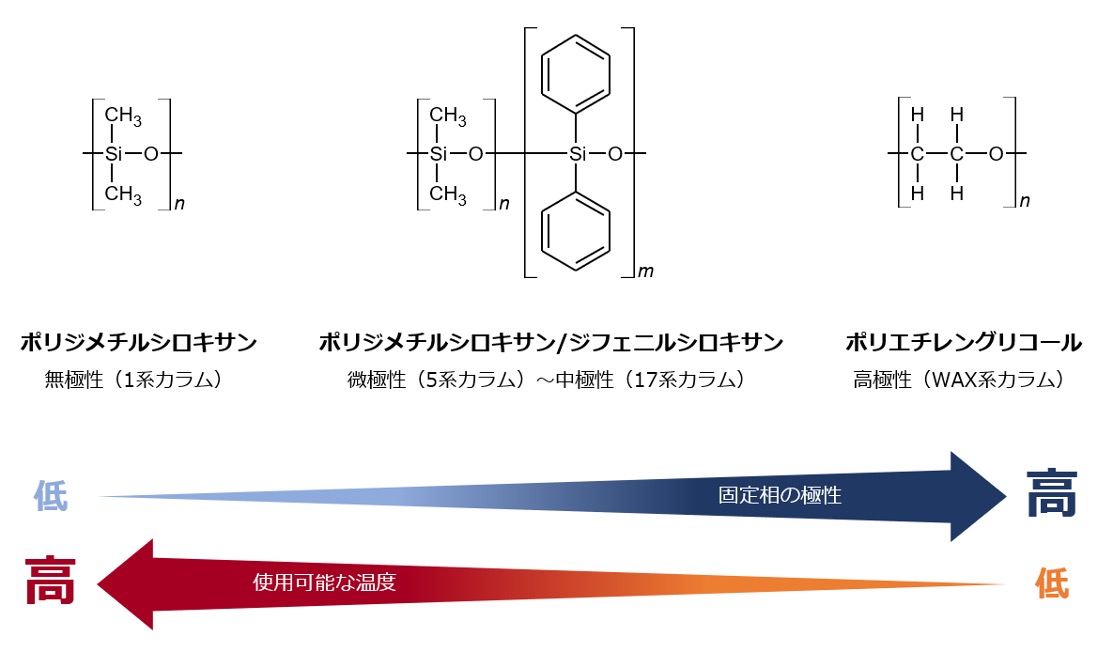 毛细管柱内壁涂有固定相,其特性(极性、最高工作温度等)根据固定相的类型而变化。