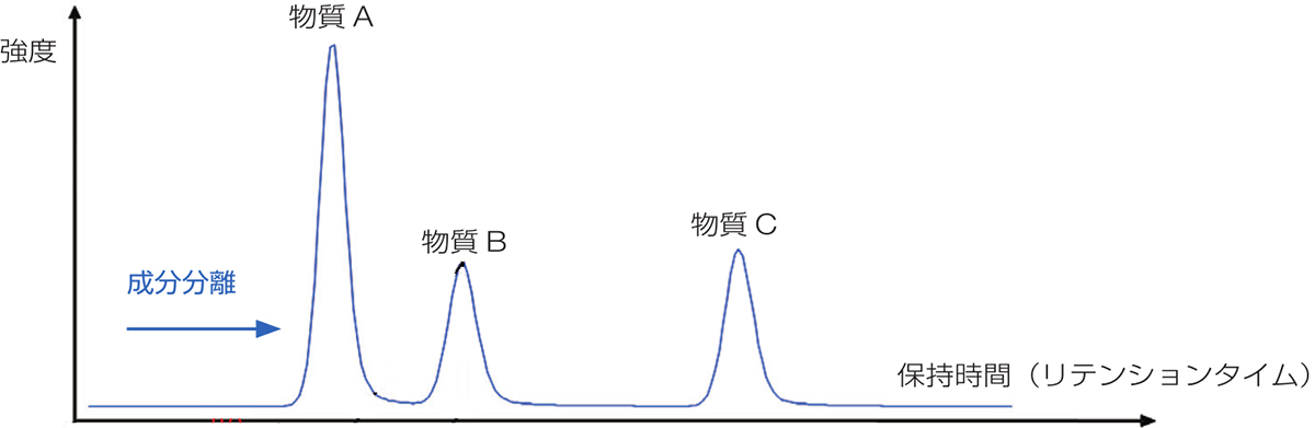 测量结果显示为称为“色谱图”的波形。横轴表示材料注入后经过的时间(保留时间),纵轴表示信号强度。