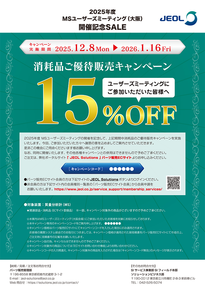 我们将在有限的时间内向参加第 45 届 MS 用户会议(大阪)的所有人举办消耗品特别促销活动。我们想请您利用这个机会。订购时,您需要一个此活动专用的“活动代码”。