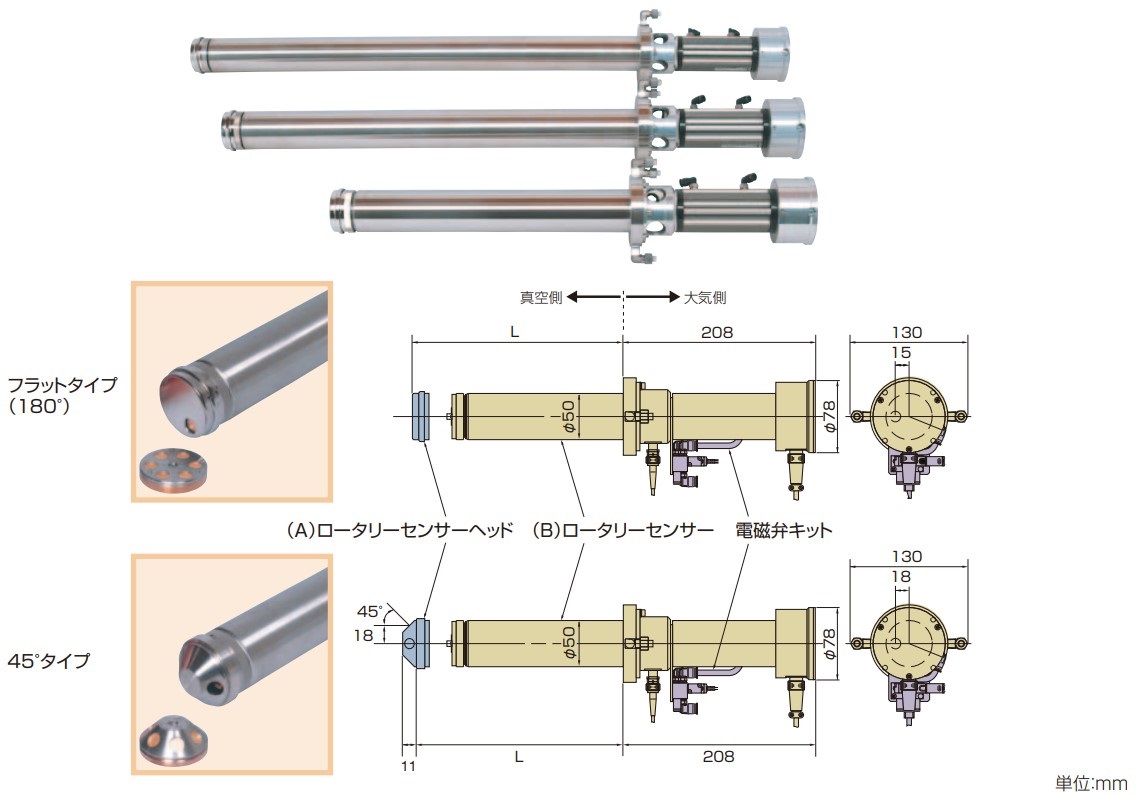 传感器头有两种类型:平面型和45°型,可根据安装位置使用。