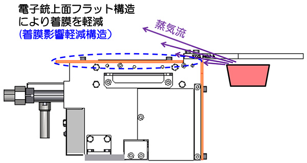 电子枪的平顶结构减少了薄膜沉积,降低了维护频率。
