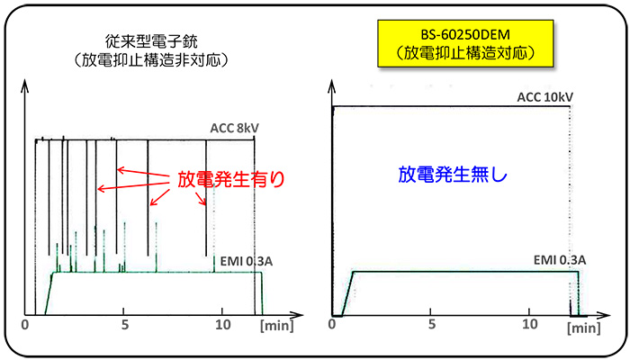 该结构减少了电子枪内部压力的突然升高,抑制了放电的发生。