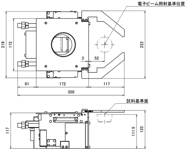 支持大容量坩埚标准兼容φ50mm坩埚,通过使用选购的极片BS-60830PP250*,还可兼容100mL以上的φ70mm坩埚。*) 光束移动/扫描范围为 φ50mm。
