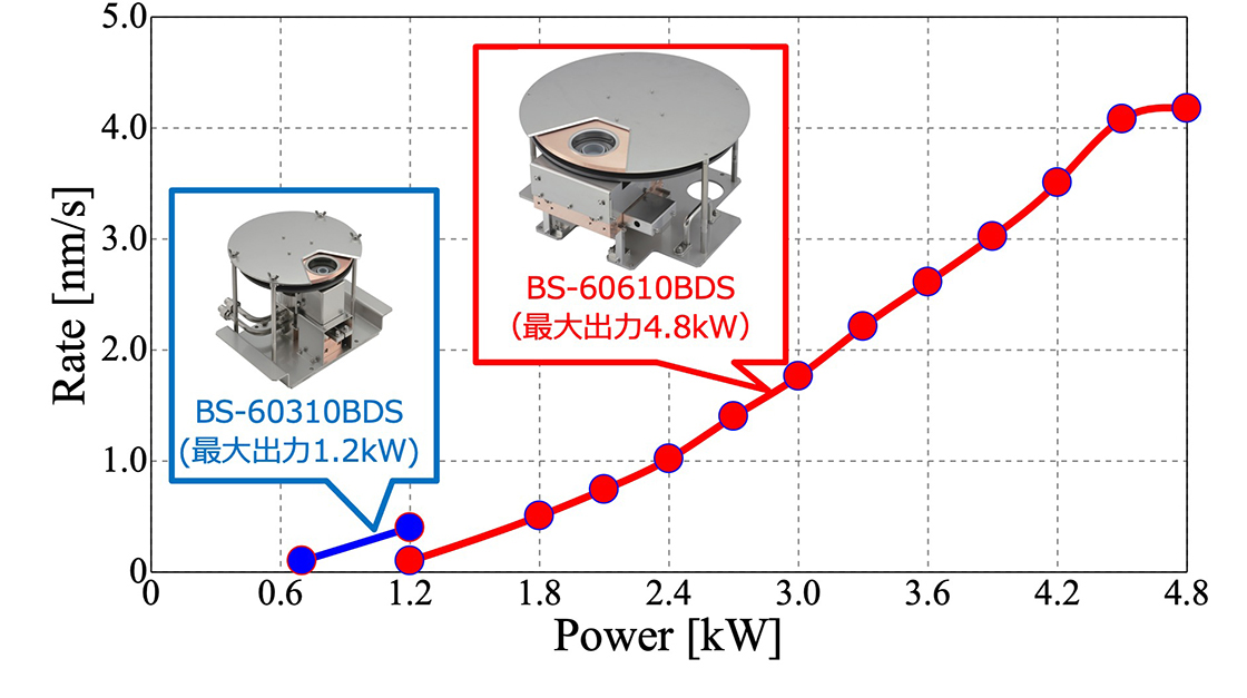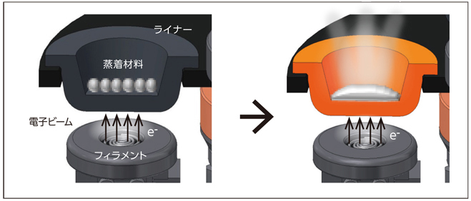 扩大的电子束照射范围降低了电子束电流密度,从而可以在不损坏衬里的情况下增加最大输出。另外,由于电子束照射范围的扩大,蒸发面积也扩大。