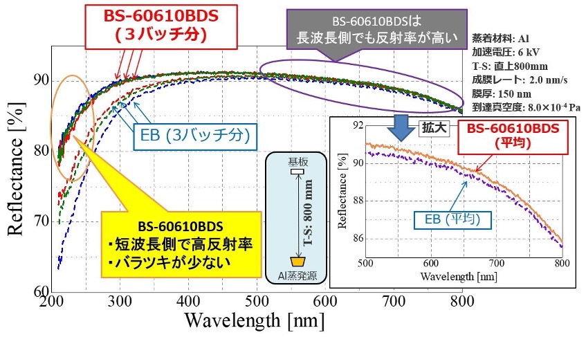 BS-60610BDS与EB蒸镀铝膜3批次反射率特性对比数据。