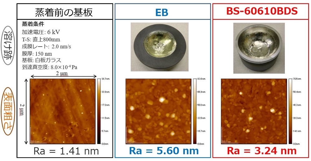 这是Al膜的算术表面粗糙度数据。与 EB 蒸镀相比,表面光滑度得到改善。