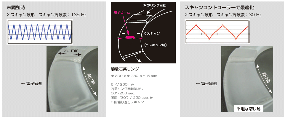 这是JST-F系列电源专用的扫描波形发生单元。改善蒸发材料的熔化痕迹将导致改善膜厚度分布的再现性。 BS-64010SCT 扫描控制器可以生成各种定制的扫描模式,以调整沉积材料的熔化轨迹。