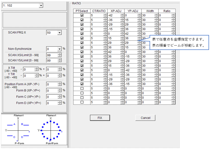 将光束照射到任意多个点。还可以设置每个点的 XY 扫描。