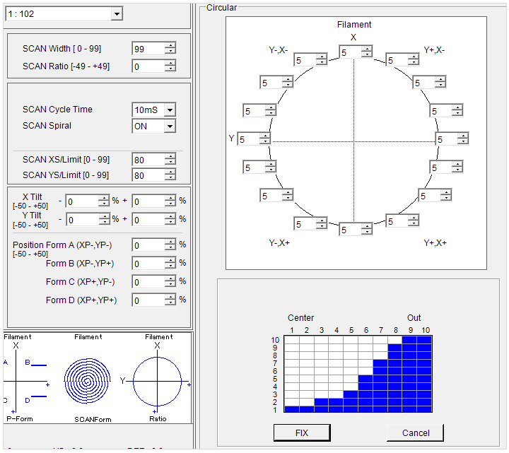 一支电子枪可以存储针对每种材料优化的 15 种扫描模式。