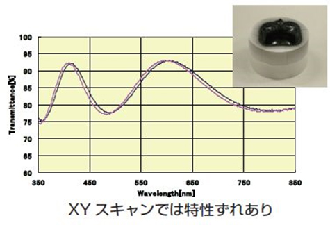 在XY扫描中,基板圆顶最外周的光谱特性在第一批(浅挖时)和第三批(深挖时)之间不同。