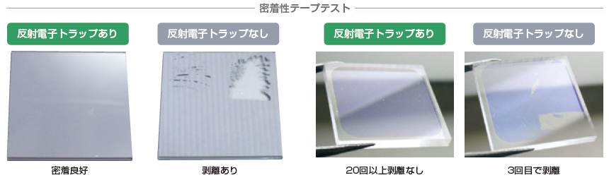 通过抑制入射背散射电子对基板表面层造成的损伤,提高了膜的附着力。