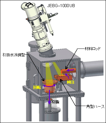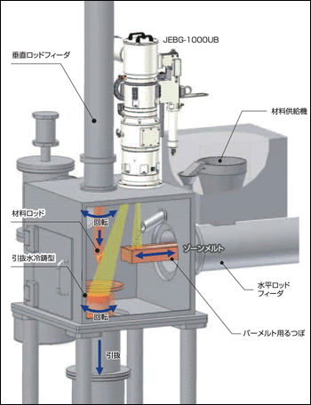 水平送棒机+EB熔化、精炼、使用拉丝模具进行拉丝