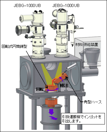 根据应用和所需输出,也可以安装两支电子枪。当对炉床和旋转模具、或者棒和拉伸模具等多个靶材进行EB照射时,可以使用各电子枪进行EB照射。