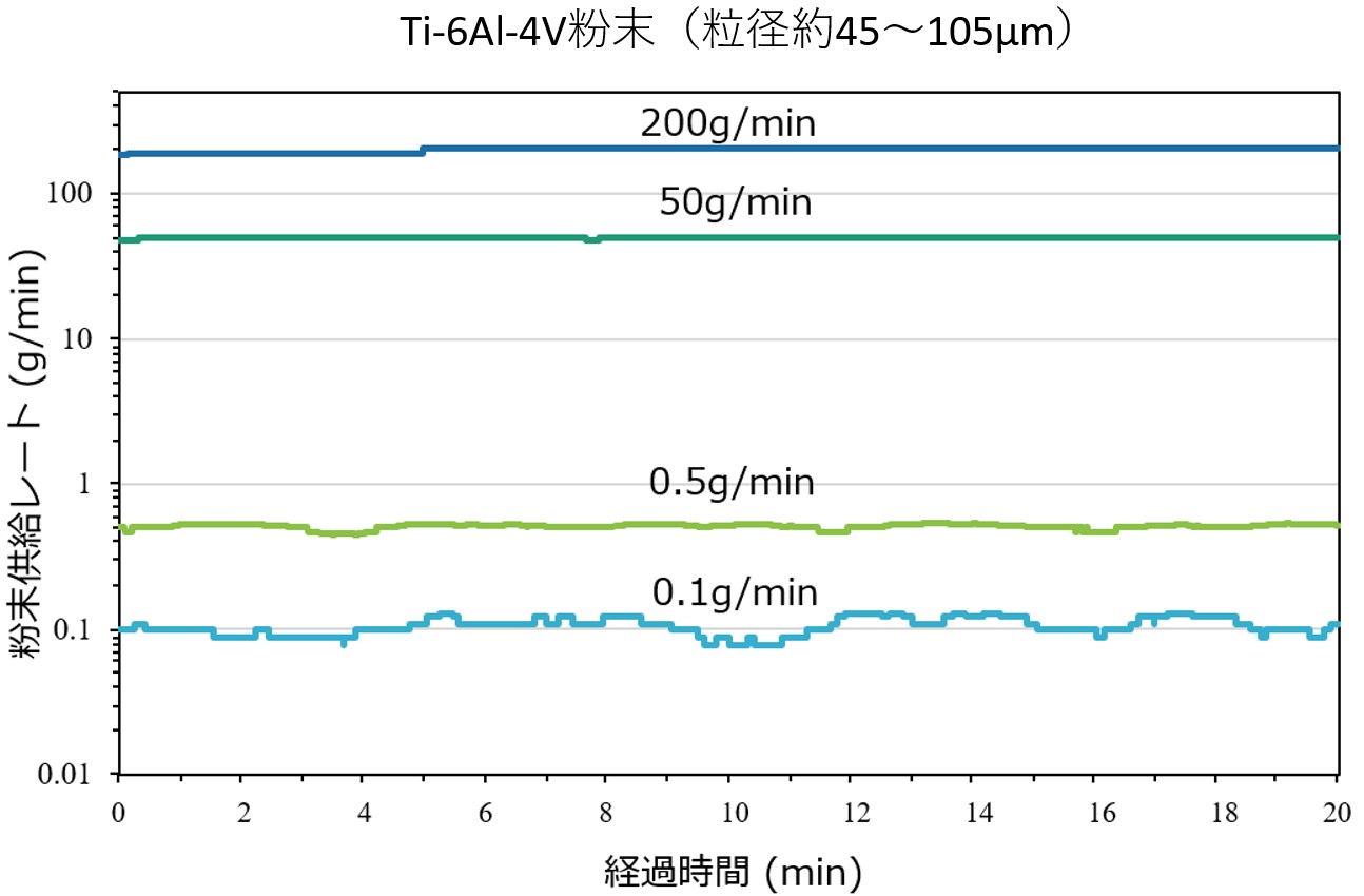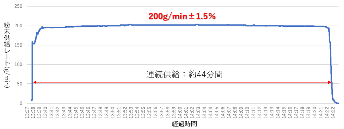 粉末供给量可以通过供给板和搅拌叶片的转速来控制,但通过更换或添加可选项目,单个主机可以处理广泛的粒径(约01μm至数百μm)和供给量(约01至数百g/min)。※