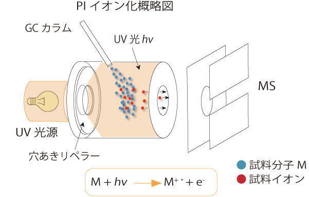 这是一种通过将真空紫外(VUV)光照射到电离室并向样品分子施加约8至10eV的光能来电离样品分子的方法。典型有机化合物的电离能为8至11eV,因此这是一种软电离方法,在电离过程中使用低能量,可以抑制碎片离子的产生。在紫外线区域吸收的化合物,例如芳香族化合物,往往比其他化合物具有更高的灵敏度。这是不需要反应气的GC-MS软电离方法,任何人都可以轻松使用。可有效估计未知化合物的分子量。