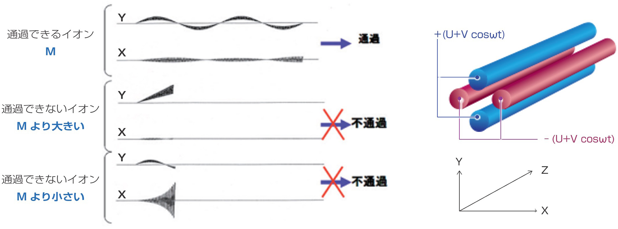 四极杆质谱仪 (QMS/TQMS):m/z∝射频电压(V)、直流电压(U)