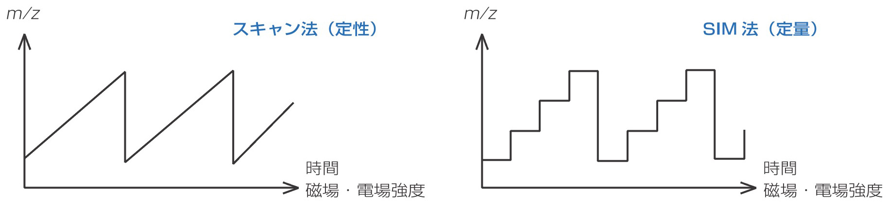 QMS/TQMS 使用传输四极杆质谱仪来分离离子,并根据目的在扫描模式和 SIM 模式之间切换。 TOFMS 没有模式切换的概念,并且始终采集质谱。