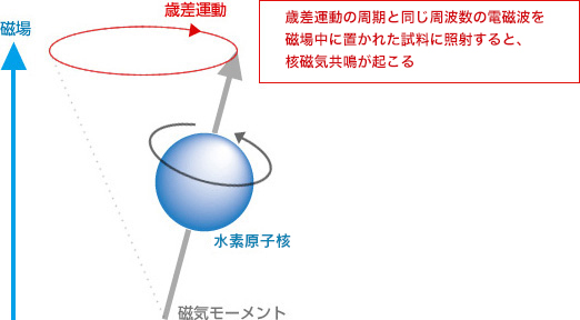 一些原子具有小的原子核,例如氢原子核,具有磁性。这样的磁铁绕其轴旋转,就像陀螺一样。当放置在磁场中时,它的行为类似于陀螺的振荡运动。那个电信号核磁共振信号在 1174 T(特斯拉)的磁场强度下,氢原子核大约有 500 个