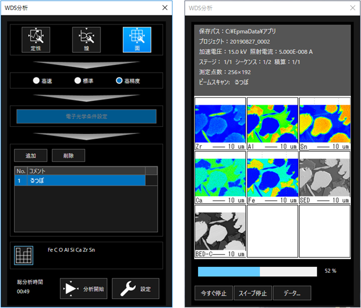 简单的EPMA设置屏幕和数据显示