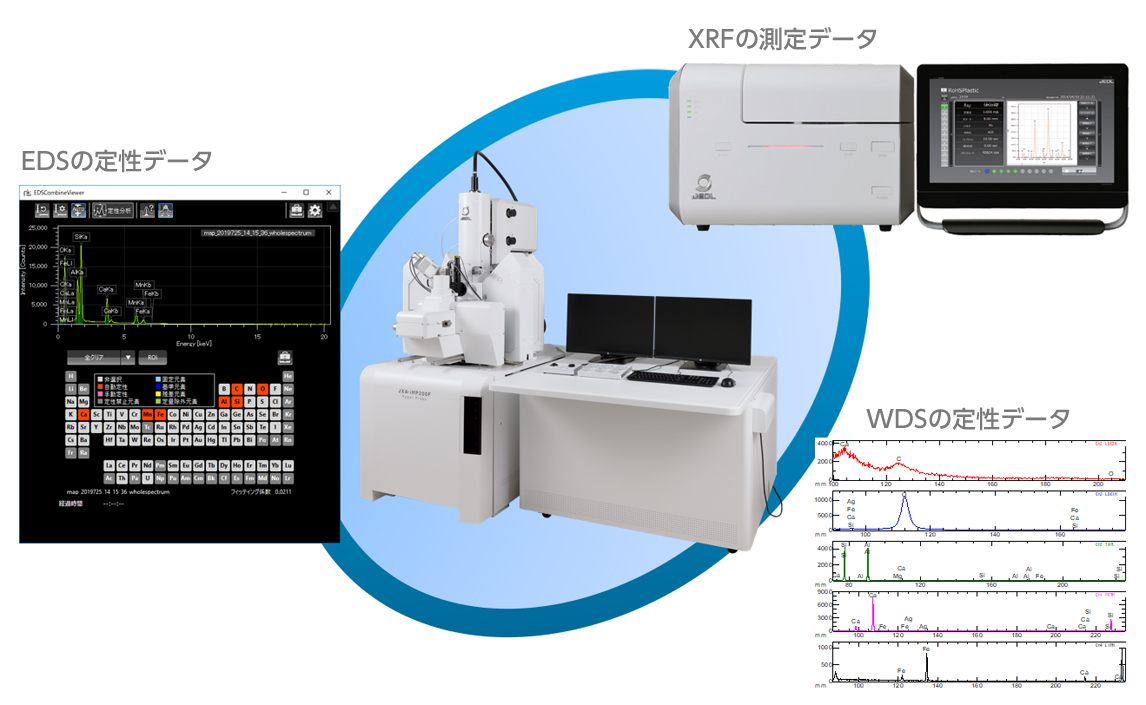 通过将光学显微镜的自动对焦功能与配备新型高精度/高速系统的SEM的自动功能相结合,任何人都可以获得高品质的SEM图像。“实时分析”允许在观察期间进行筛选分析。我们准备了即使是初学者也能操作EPMA的“Easy EPMA”。通过“EPMA-XRF 集成”,现在可以根据 XRF 数据设置 EPMA 条件。通过 WD/ED 集成,现在可以提高分析时间的效率。通过集成 SEM、EDS、XRF、WDS 和光学图像,提高了可操作性。