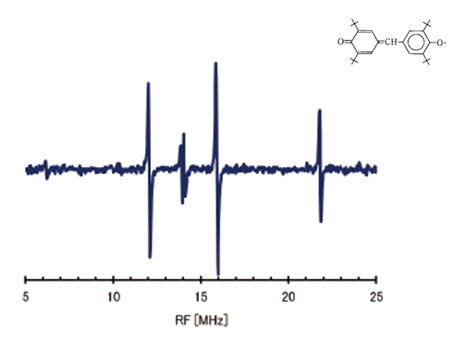如果用强微波使ESR饱和并照射无线电波以促进NMR转变,则ESR水平之间的饱和将被解决并且ESR信号将被恢复。即,通过ESR检测NMR信号。