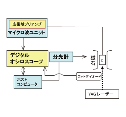 时间分辨ESR设备可在时域内高速检测脉冲激光照射产生的极短寿命的顺磁性物质。由于直接检测ESR信号而不使用磁场调制,因此可以保证亚微秒的时间分辨率。可以在光激发后立即识别短寿命中间体并跟踪反应。