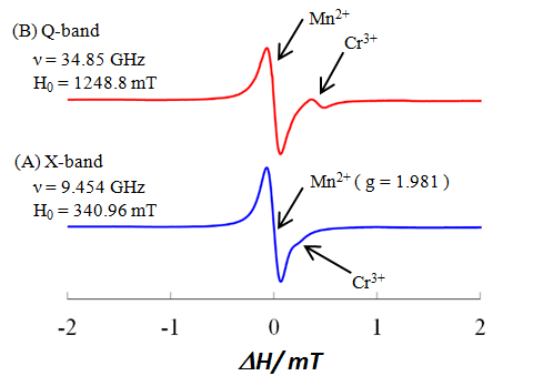 作为杂质包含的Mn2+和Cr3+的ESR信号(A)X带,(B)Q带