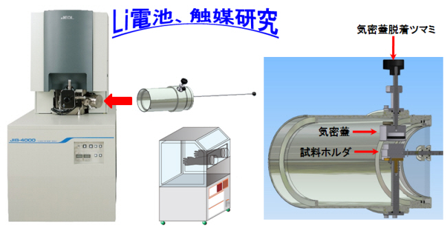 在非大气样品交换室中使用类似手套箱的装置在惰性气体中制备样品后,可以将其移至样品交换室而不暴露在大气中并使用FIB进行观察和处理。