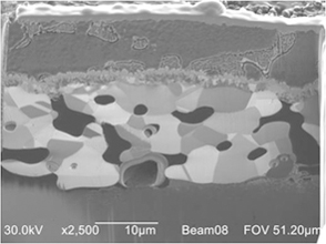 图2 片式电容器接合界面的截面观察(SEM、SIM)