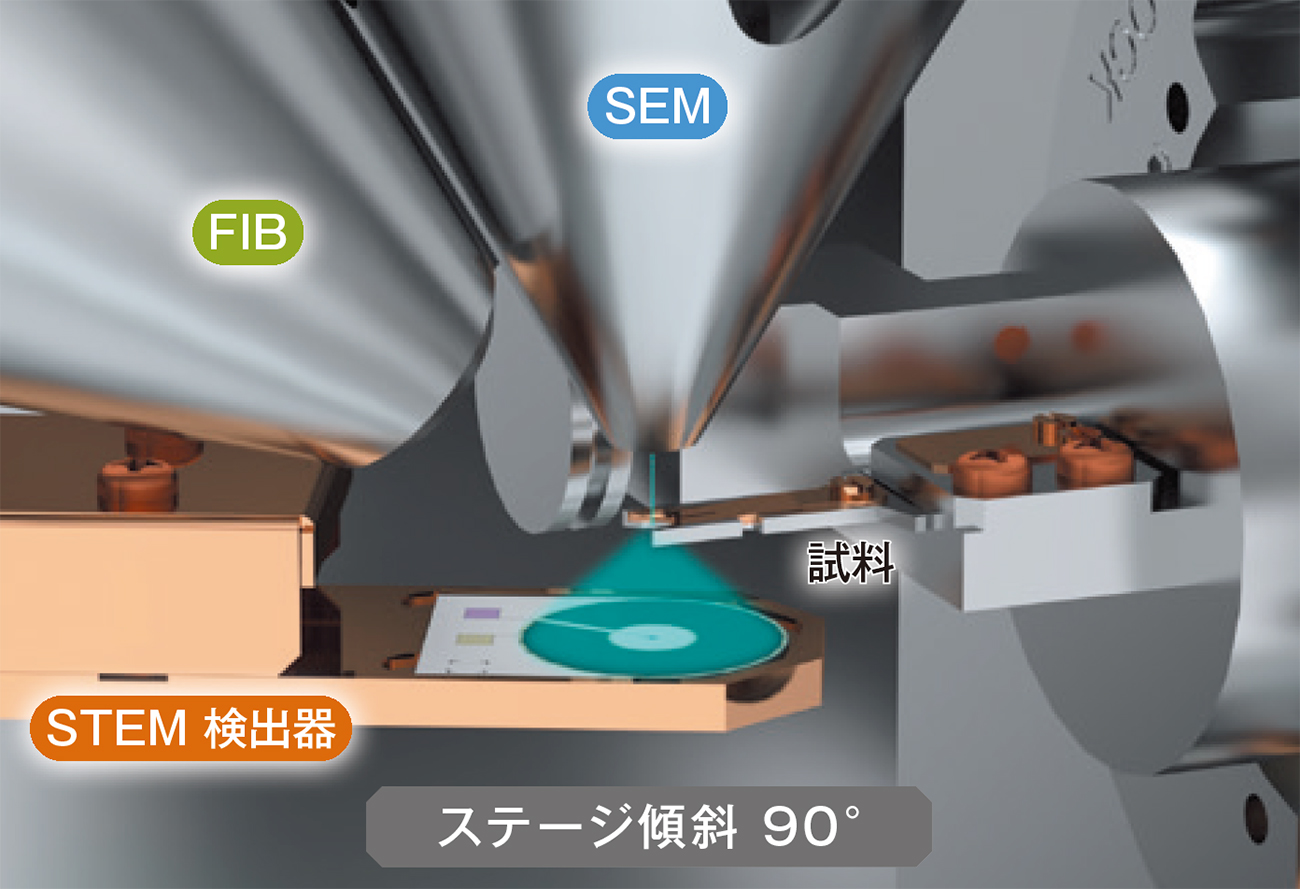 FIB柱的布置比传统型号的工作距离更短,新开发的电源提高了低加速范围内的性能。