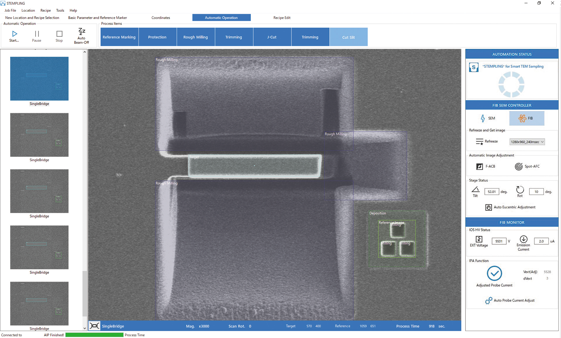 为了可靠地制备 TEM 样品,能够现场检查制备的样品非常重要。JIB-PS500i 可让您从 TEM 样品制备无缝过渡到 STEM 观察。通过重复薄片加工和STEM观察,可以制备令人满意的样品。
