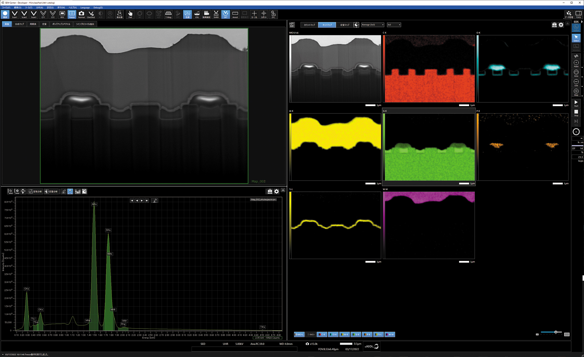 无需切换软件即可进行样品元素分析。 (EDS,日本电子株式会社制造)※仅在装备后可用。 )