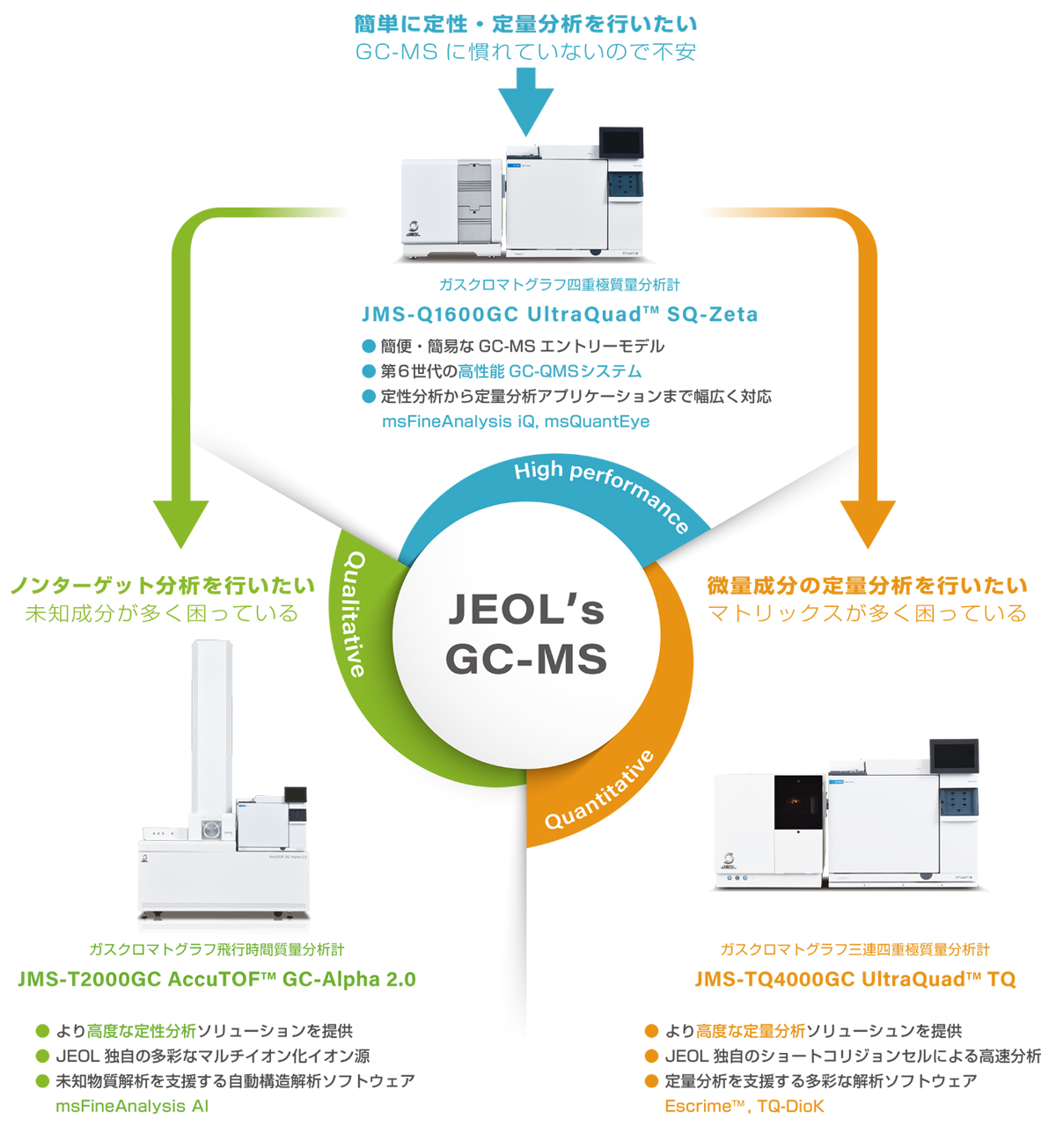 气相色谱-质谱仪(GC-MS)可以处理各种领域所需的定性和定量分析,包括绿色社会的能源领域、半导体和塑料等材料领域以及安全保障的环境和食品领域,预计未来将成为越来越不可或缺的分析仪器。我们拥有GC-QMS、GC-TQMS、GC-TOFMS、甚至磁场MS等多样化的产品阵容,我们将根据您的需求提出最佳解决方案。