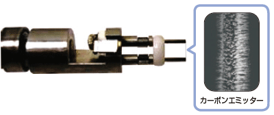 将溶解或分散在溶剂中的样品涂在尖端的碳发射器上