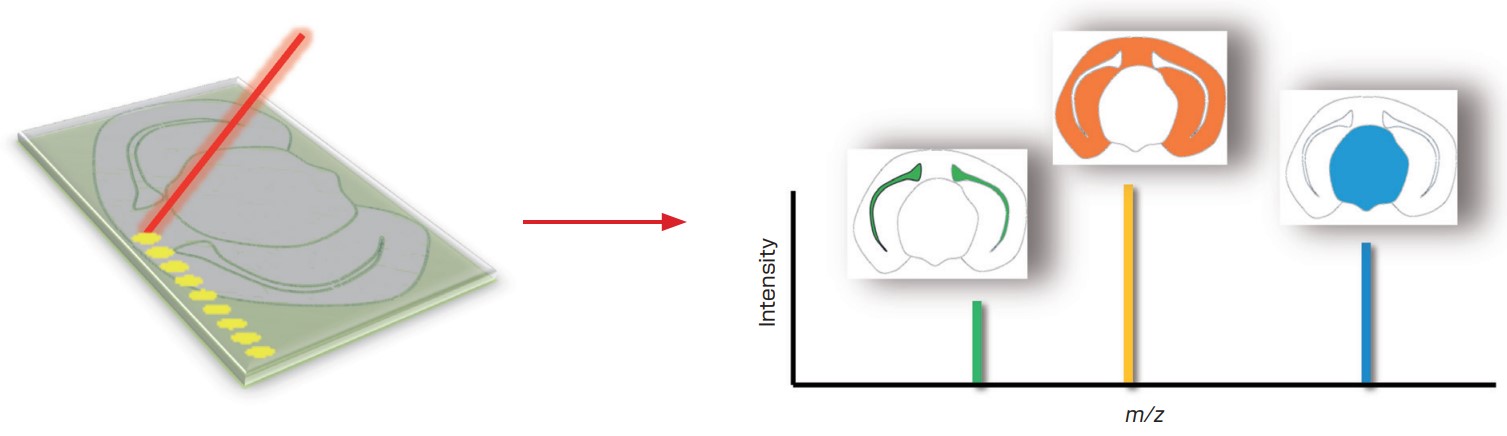 将要进行质量成像的样品,例如组织切片,放置在涂有导电氧化铟锡(ITO)的载玻片上,喷洒基质溶液,干燥,然后引入仪器中。
