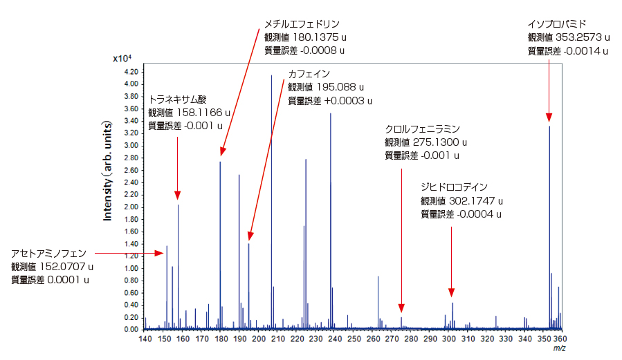在有机化合物的结构分析中,除了通过HE-CID获得的结构信息之外,通过确定离子种类(加成离子),可以使用螺旋模式下的精确质量来提高成分估计的准确性。