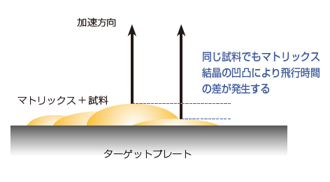 基质晶体的不均匀性会导致飞行起始位置的差异,从而导致飞行时间的差异。 SpiralTOF™-plus 30通过延长飞行距离来最大限度地减少这种影响,稳定质量分辨率,并使用外标法实现高质量精度。此外,即使在测量大型且不平坦的样品表面(例如生物切片样品的质量成像)时,也能保持高质量分辨率和质量精度。