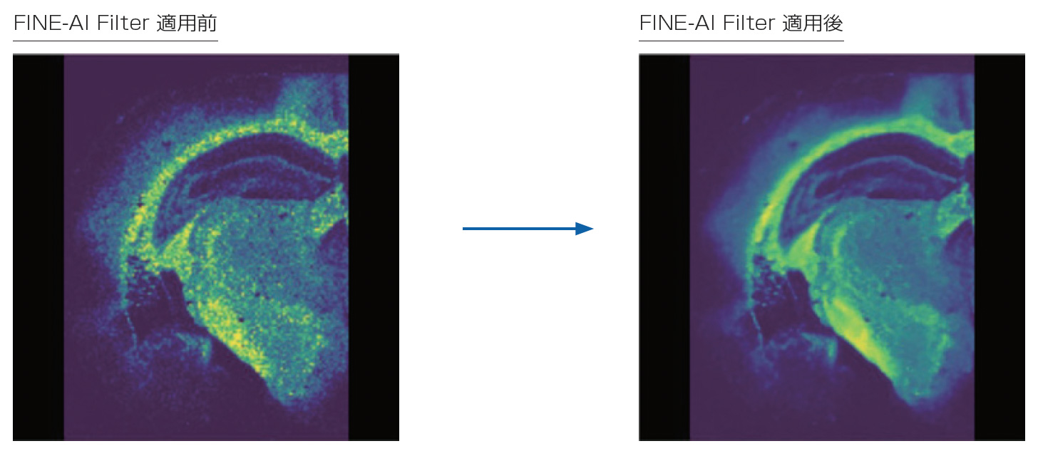 海量成像数据处理软件msMicroImager™版本3(可选)新配备了使用AI(机器学习)的噪声滤波器FINE-AI Filter。通过优化和实施在扫描电子显微镜(SEM)海量成像数据处理中培育的LIVE-AI(实时图像视觉增强器-AI)技术,我们实现了海量图像图像质量的显着提升。