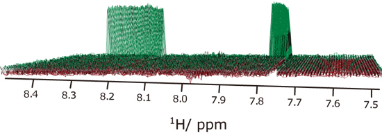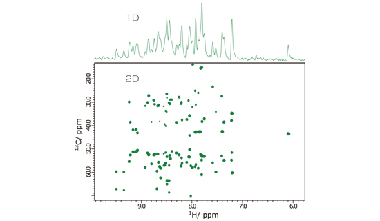 1D1H-13C HMQC丰度比约为1%13C 加入1观察H的相关信号(左右信号),约99%12C 加入1有必要消除直接观测到的H信号(中心附近残留的信号)。因此,它被用来检查稳定性。
