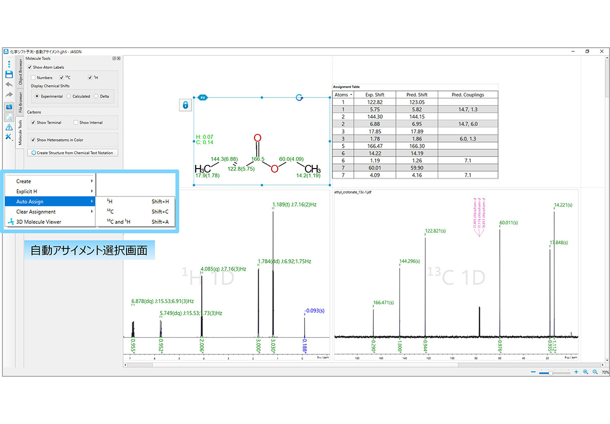JASON 通过化学位移预测功能突出显示分子结构和光谱(显示 1D、2D)来辅助分析
