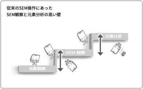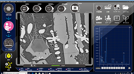 JEOL 是一家 SEM 制造商,但我们也在内部开发和制造 EDS。因此,SEM观察和EDS分析可以在最佳位置并使用相同的用户界面进行。我们将介绍三种可以在观察时进行分析的筛选功能。