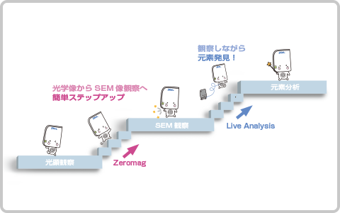 配备了“Zeromag”等功能,可让您通过放大光学图像来查看SEM图像,“实时分析”可让您无需启动分析仪即可看到正在观察的视野中的元素,“实时3D”可让您在SEM观察期间进行三维观察。