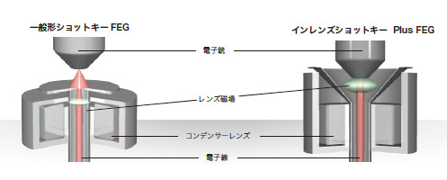 镜内肖特基Plus场发射电子枪通过进一步改进电子枪和低像差聚光透镜的融合实现了高亮度。