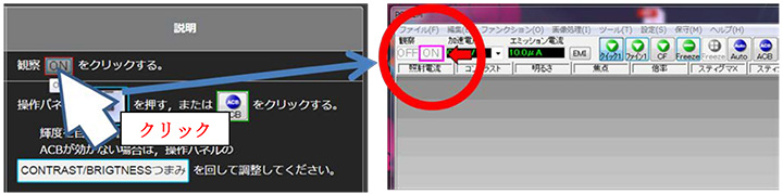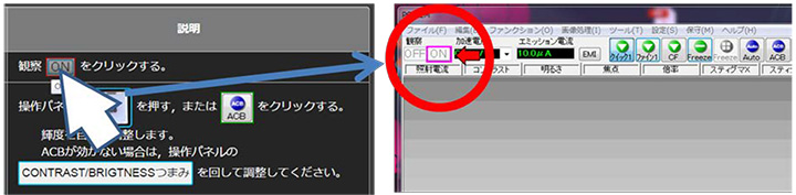 当您将鼠标光标悬停在 Smile Navi 手册上的按钮上时,SEM GUI 上的相应按钮周围将放置一个框架。