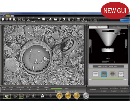 该设备是一款扫描电子显微镜,通过改进照射系统、排气系统和信号处理系统,不仅可以提供高质量的观察,而且还可以使用触摸屏操作和高速载物台实现高通量和直观的操作。