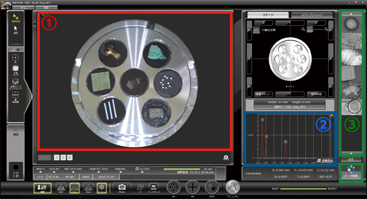 SMILE VIEW™ Lab 是一种数据管理器,可集中管理与载物台位置相关的 CCD 图像、SEM 图像和 EDS 分析结果等数据,并允许您在短时间内创建报告。您可以轻松查看和重新分析以前获取的数据并将其开发成报告。