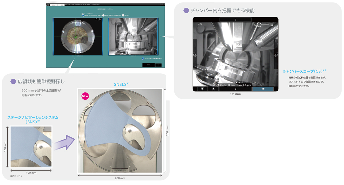 | 样品阶段 | 大型同心型X:125 毫米 Y:100 毫米 Z:80 毫米倾斜:-10 ~ 90° 旋转:360° |